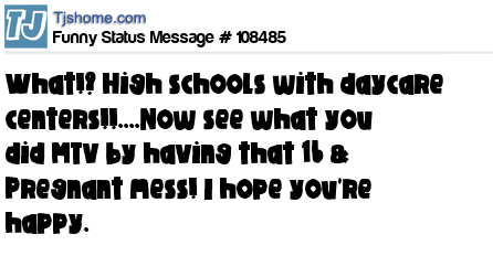 X What!? High schools with daycare centers!!....Now see what you did MTV by having that 16 & Pregnant mess! I hope you're happy.