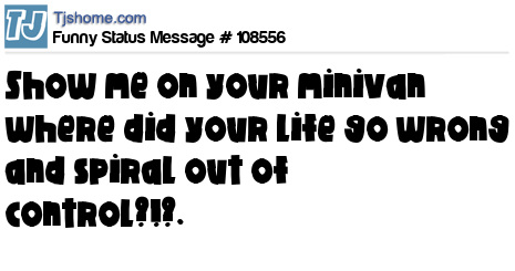 X says Show me on your minivan where did your life go wrong and spiral out of control?!?.