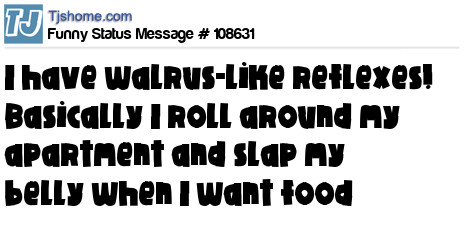 X is I have walrus-like reflexes! Basically I roll around my apartment and slap my belly when I want food