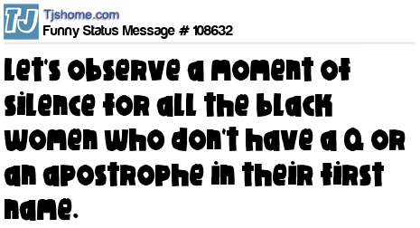 X is Let's observe a moment of silence for all the black women who don't have a Q or an apostrophe in their first name.
