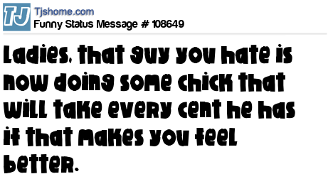 X says Ladies, that guy you hate is now doing some chick that will take every cent he has if that makes you feel better.