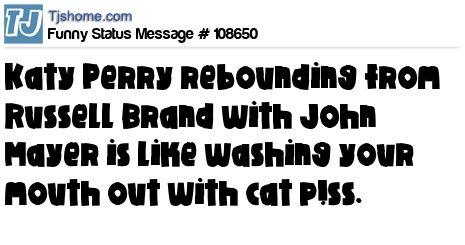 X says Katy Perry rebounding from Russell Brand with John Mayer is like washing your mouth out with cat p!ss.
