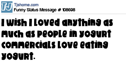 X says I wish I loved anything as much as people in yogurt commercials love eating yogurt.