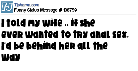X is I told my wife .. if she ever wanted to try anal sex, I'd be behind her all the way
