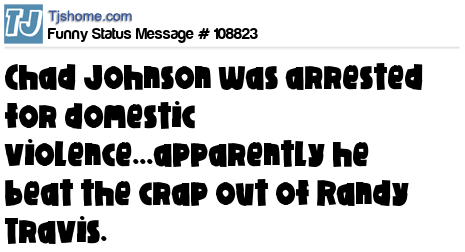 X Chad Johnson was arrested for domestic violence...apparently he beat the crap out of Randy Travis.