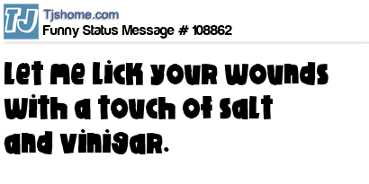 X says Let me lick your wounds with a touch of salt and vinigar.