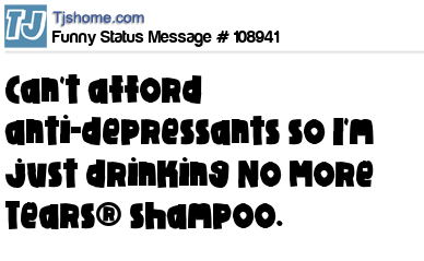 X Can't afford anti-depressants so I'm just drinking No More Tears® shampoo.