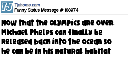 - # 109034 Now that the Olympics are over, Michael Phelps can finally be released back to his natural habitat; the couch with a bong.
