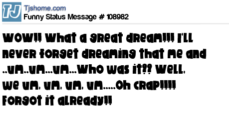 X is WOW!! What a great dream!!! I'll never forget dreaming that me and ..um..um...um...Who was it?? Well, we um, um, um, um.....Oh crap!!!! Forgot it already!!