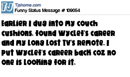 X says Earlier I dug into my couch cushions, found Wyclef's career and my long lost TV's remote. I put Wyclef's career back coz no one is looking for it.
