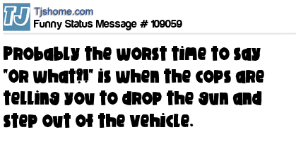 X says Probably the worst time to say "Or what?!" is when the cops are telling you to drop the gun and step out of the vehicle.