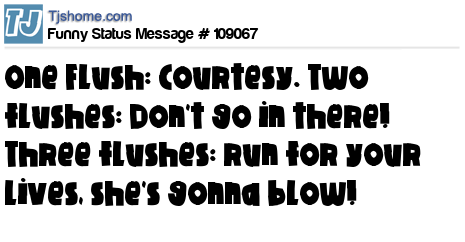 X is One Flush: Courtesy. Two flushes: Don't go in there! Three flushes: run for your lives, she's gonna blow!