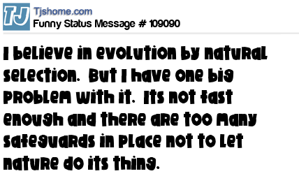 - # 105102 The problem with natural selection is that it isn't killing stupid people off quickly enough.
