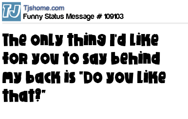 X says The only thing I'd like for you to say behind my back is "Do you like that?"