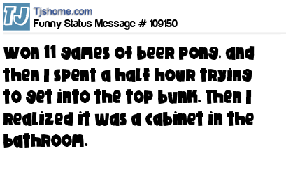 X is Won 11 games of beer pong, and then I spent a half hour trying to get into the top bunk. Then I realized it was a cabinet in the bathroom.