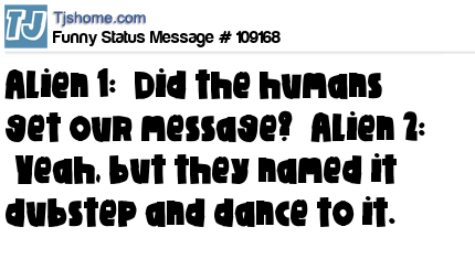 X Alien 1: “Did the humans get our message?” Alien 2: “Yeah, but they named it dubstep and dance to it.”