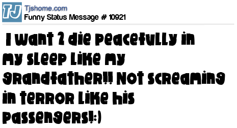 - # 206895 When I die, I want to die like my grandfather who died peacefully in his sleep. Not screaming like all the passengers in his car.