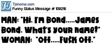 X MAN: "Hi. I'm Bond.....James Bond. What's your name?" WOMAN: "Off.....Fu¢k Off."
