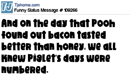 X  And on the day that Pooh found out bacon tasted better than honey, we all knew Piglet's days were numbered.