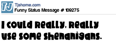 X I could really, really use some shenanigans.