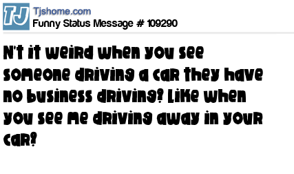 X says n't it weird when you see someone driving a car they have no business driving? Like when you see me driving away in your car?