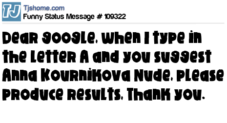 X Dear google, when I type in the letter A and you suggest Anna Kournikova Nude, please produce results, Thank you.
