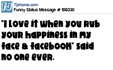 X "I love it when you rub your happiness in my face & facebook" said no one ever.