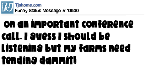 X is on an important conference call. I guess I should be listening but my farms need tending dammit!