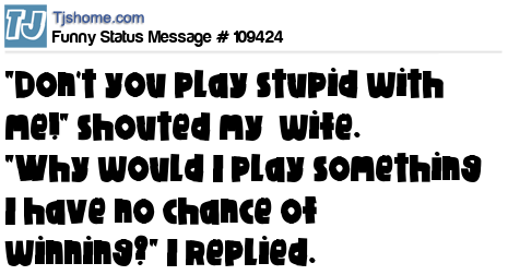 X "Don't you play stupid with me!" shouted my wife. "Why would I play something I have no chance of winning?" I replied.