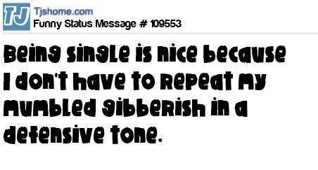 X is Being single is nice because I don't have to repeat my mumbled gibberish in a defensive tone.