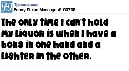 X says The only time I can't hold my liquor is when I have a bong in one hand and a lighter in the other.