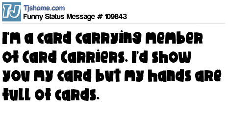 X says I'm a card carrying member of Card Carriers. I'd show you my card but my hands are full of cards.