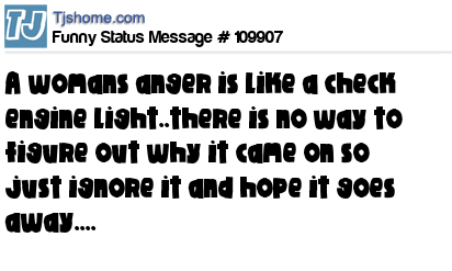 X A womans anger is like a check engine light..there is no way to figure out why it came on so just ignore it and hope it goes away....