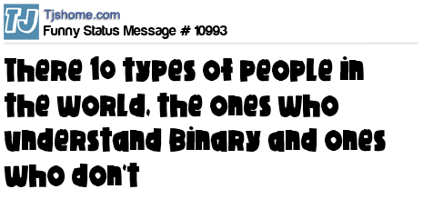 - # 47626 There are only 10 types of people in the world: those who understand binary and those who don't.