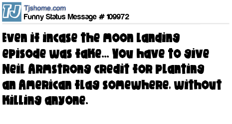 X Even if incase the moon landing episode was fake... You have to give Neil Armstrong credit for planting an American flag somewhere, without killing anyone.