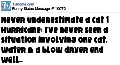 X says Never underestimate a Cat 1 Hurricane: I've never seen a situation involving one cat, water & a blow dryer end well..