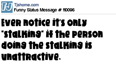 X says Ever notice it's only "stalking" if the person doing the stalking is unattractive.