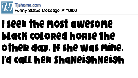 X I seen the most awesome black colored horse the other day. If she was mine, I'd call her ShaNeighNeigh ツ