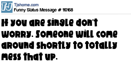 X says If you are single don't worry. Someone will come around shortly to totally mess that up.