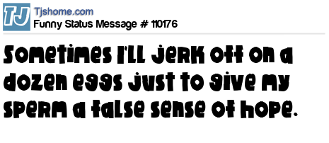 X says Sometimes I'll jerk off on a dozen eggs just to give my sperm a false sense of hope.
