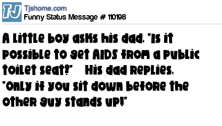 X A little boy asks his dad, "Is it possible to get AIDS from a public toilet seat?" His dad replies, "Only if you sit down before the other guy stands up!"