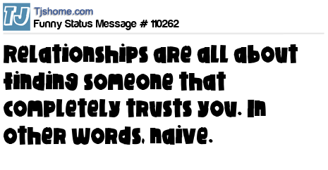 X says Relationships are all about finding someone that completely trusts you. In other words, naive.