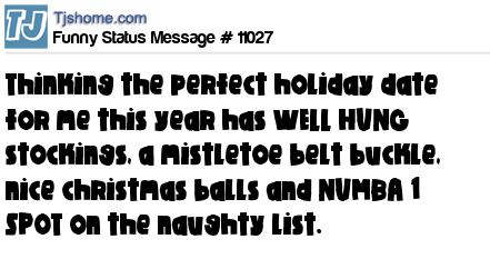 X is thinking the perfect holiday date for me this year has WELL HUNG stockings, a mistletoe belt buckle, nice christmas balls and NUMBA 1 SPOT on the naughty list.