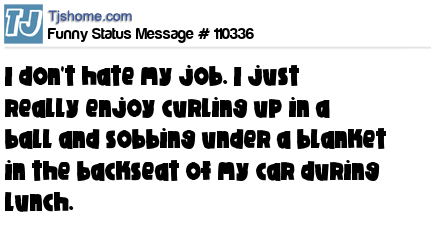 X says I don't hate my job. I just really enjoy curling up in a ball and sobbing under a blanket in the backseat of my car during lunch.