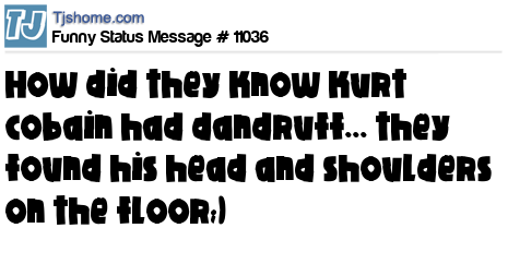 X How did they know kurt cobain had dandruff... they found his head and shoulders on the floor;)