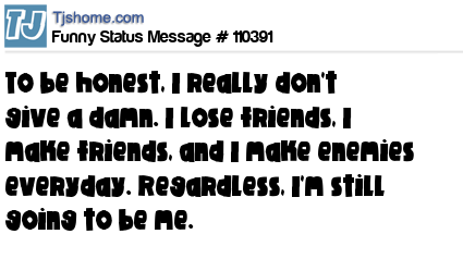 X is To be honest, I really don't give a damn. I lose friends, I make friends, and I make enemies everyday. Regardless, I'm still going to be me.