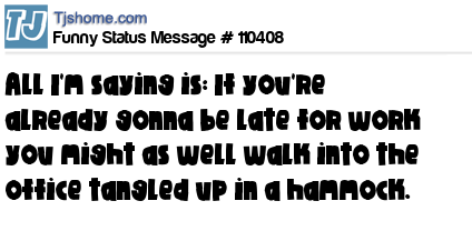 X All I'm saying is: If you're already gonna be late for work you might as well walk into the office tangled up in a hammock.
