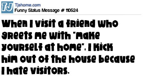 - # 109237 When I visit a friend who greets me with "make yourself at home," I kick him out of the house because I hate visitors!