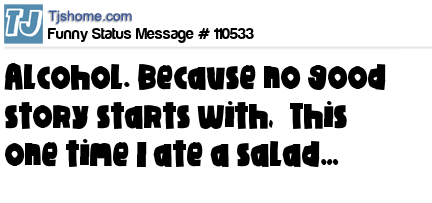 - # 139299 Alcohol: Because no great story ever started with someone eating salad.