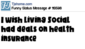 - # 88484 I don't have health insurance, but I do have car insurance. So whenever I get sick I just go crash my car into a tree.
